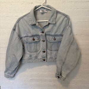 Princess Polly Cropped Light Wash Denim Jacket Y2K 90s M/L Vintage Style