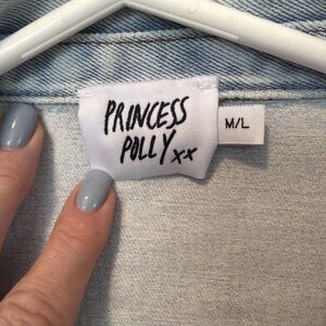 Be on trend this fall in winter with this light wash princess Polly denim jacket, reminiscent of the late 90s early 2000s. Like new condition.