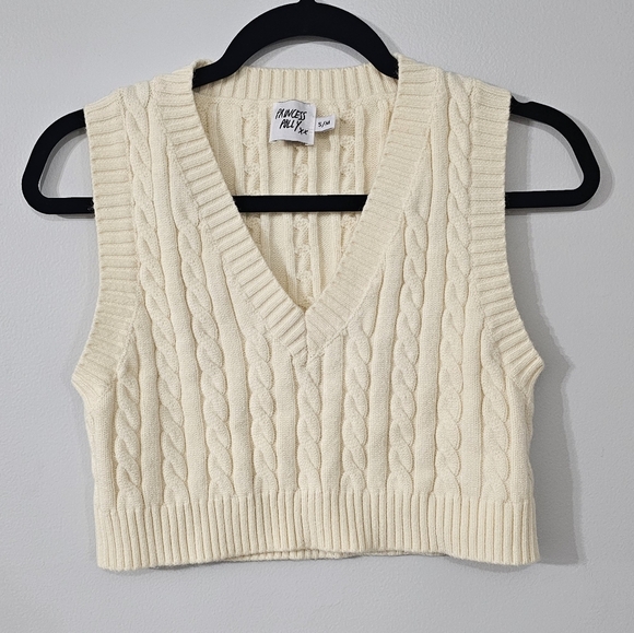 Princess Polly Cropped Sweater Vest off white S/M