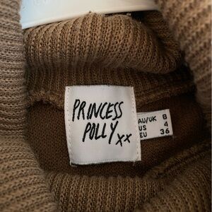 Princess Polly Cropped Sweater Women’s Size 4 Brown Cowl Neck Minimalist