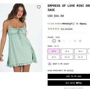 Princess Polly Empress of Love Mini Dress Sage Size NWT Small