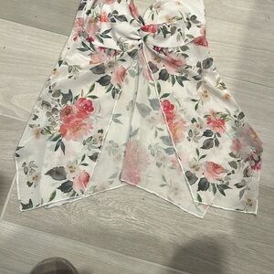 Chic dress with floral design. Features delicate spaghetti straps. Perfect for any occasion.