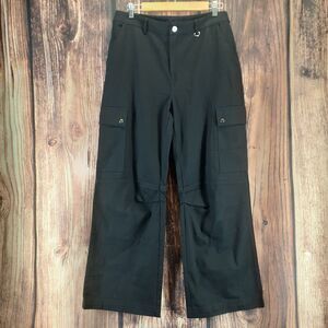 Princess Polly Fallout Black Mid Rise Flat Front Wide Leg Cargo Utility Pants 8