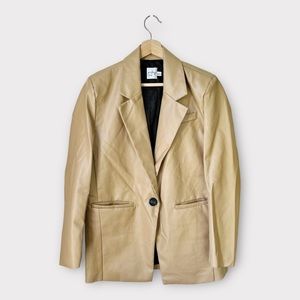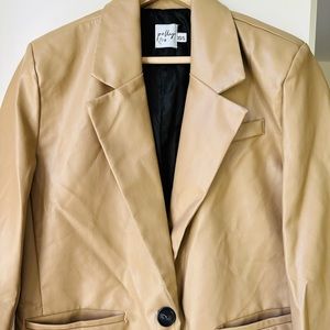 Princess Polly Faux Leather Blazer in Tan, size XS/S