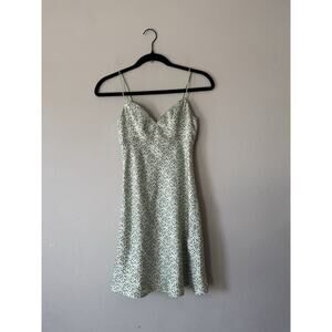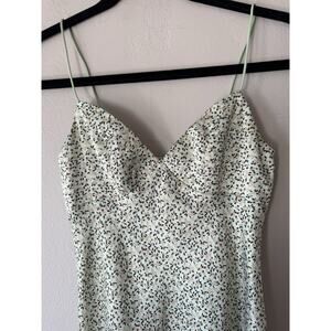 Princess Polly Floral Satin Slip Dress Size 2 Light Green Slit Party Boho Glam