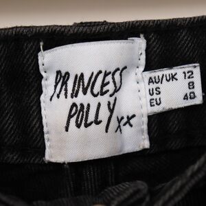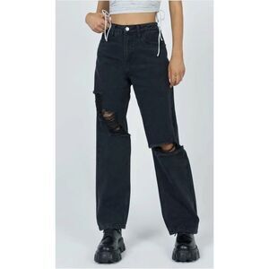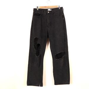 Princess Polly Fraya High Rise Ripped Black Denim Boyfriend Jeans size 12
