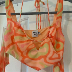Princess Polly Funky 90's Style Sheer Too Floating Sleeves Tie Dye Orange Yellow