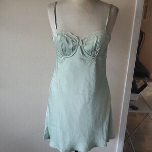 This charming mini dress from Princess Polly features a soft green hue and a structured bodice with defined cups for a flattering fit. The lightweight fabric flows gracefully to a mid-thigh length, offering a comfortable and elegant silhouette.