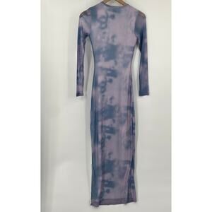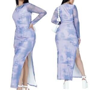 Princess Polly Harlowe Mesh Maxi Dress Tie Dye Print High Slit Blue Purple NEW