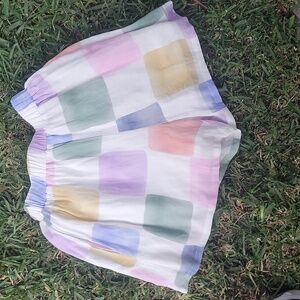 Princess Polly Italian villa Colorblock Checkered cream blue cotton shorts sz 2