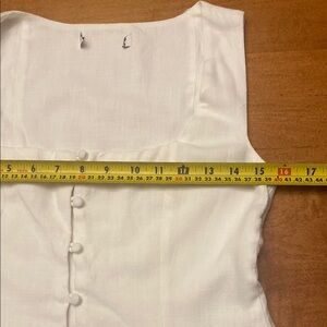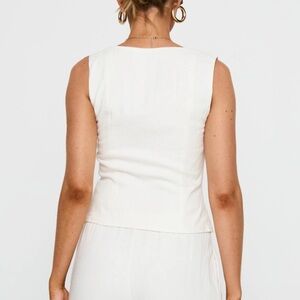 Chic ivory crop top with button-up front. Sleeveless and elegant. Ideal for casual outings.