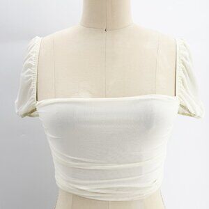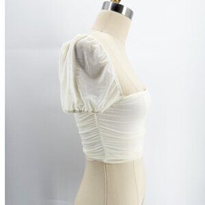 Princess Polly Ivory Ruched Draped Crop Cap Sleeve Top Sz 2