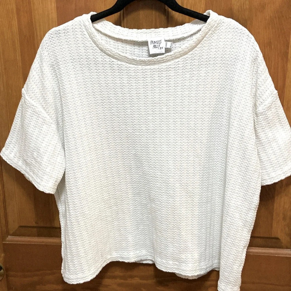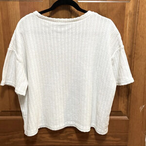 Stylish ivory crop top. Textured design. Short sleeves. Ideal for everyday wear.