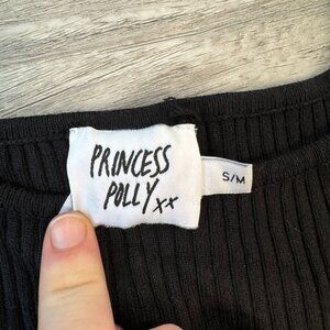 Princess Polly Jaden Black Ribbed Long Sleeve Romper