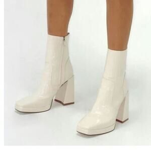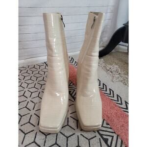 Princess Polly Jamie Croc Platform Boots in Cream, sz 9