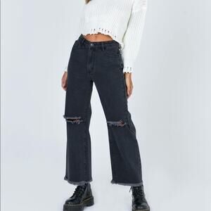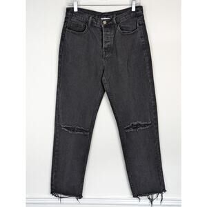 Princess Polly Jeans Denim Ripped Distressed Straight Button Fly Black Size 8
