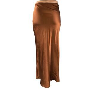 Princess Polly Jones Women's Brown Silk Satin Ruched Slim Side Zip Maxi A-Line Skirt Size 2