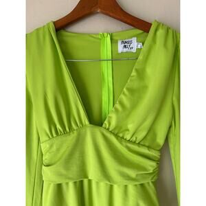 Princess Polly Jude Lime Green Long Sleeve Deep V Bodysuit US Size 0