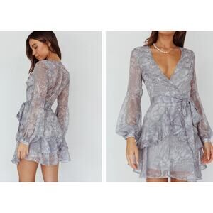 Princess Polly Kerry Layered Balloon Sleeve Dress Grey Size 2