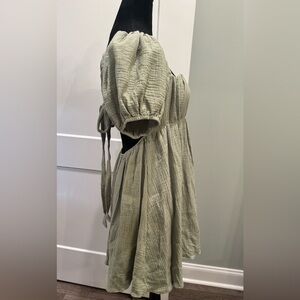 Princess Polly LET'S DANCE MINI DRESS SAGE 100% cotton puff sleeve