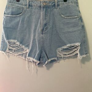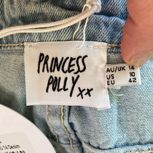 Princess Polly Light Wash Distressed Ripped Elise Shorts Size US 10 NWT