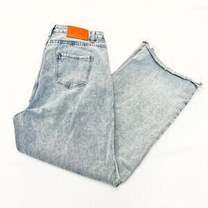 Princess Polly Light Wash Wide Leg Denim Jeans Zip Fly Raw Hem Size 10