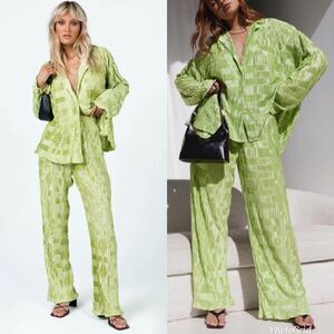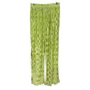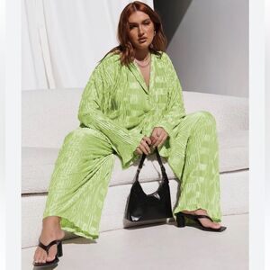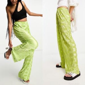 Princess Polly Lila satin plisse patterned wide leg pants in lime green