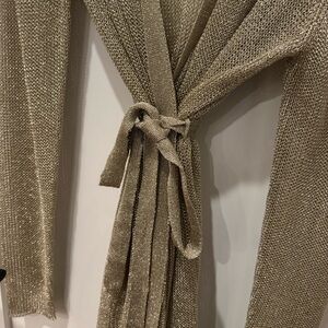 Princess Polly Lioness Mini Gold Mesh Wrap Dress. Never worn and in perfect condition! Can also be worn as a longer cardigan or kimono. Great stretch, unlined material. Recommend wearing with a slip underneath for a going out look or even as a coverup for a luxe beach look! Originally $80. #lioness #princesspolly #gold #minidress #chic