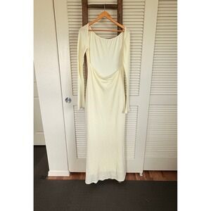 Princess Polly Long Sleeve Maxi Dress Open Back Cream Evening Gown size 12