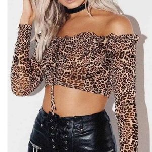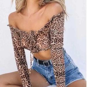 Princess Polly Long Sleeve Mesh Leopard / Cheetah Print Crop Top