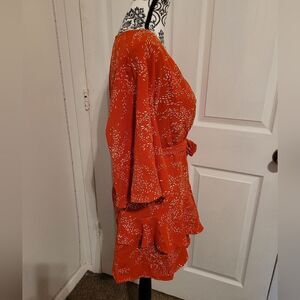 Really nice romper. Excellent quality and condition. All tags are missing. Lightweight and flowy. Please see measurements before buying. Model shows similar style. The one I'm selling has a zippered back. Measurements indicate size large.