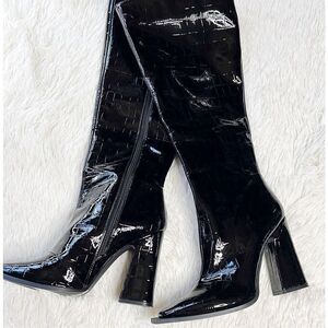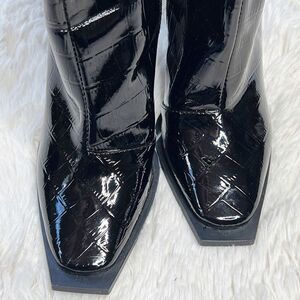 Princess Polly MERCURY Crocodile Heeled BOOTS Black Size 9 Square Toe