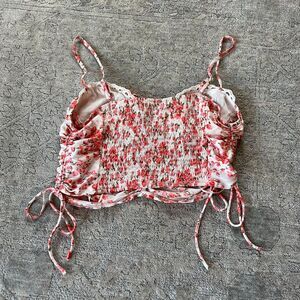 Princess Polly Maddi Top Pink Floral Ruched Lace Trim Crop Tank Women Size L/12