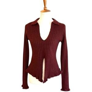 Princess Polly Maroon Split Bottom Ribbed Sweater, GORGEOUS!