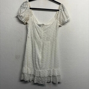 Princess Polly Mikail White Swiss Dot Puff Sleeve Sweetheart Neckline Mini Dress