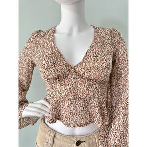 Princess Polly Morwen Abstract Floral Boho Pattern Crop Top Beige Long Sleeve size 0