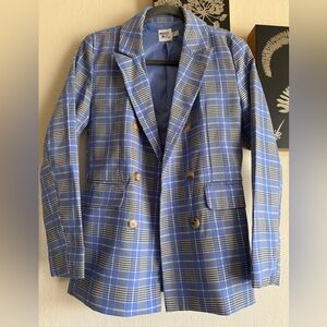 Princess Polly Mrs Nancy Blazer blue check plaid print