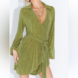 Princess Polly NWT Green Wrap Mini Dress Low Impact Stretch Size 6