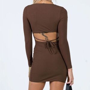 Princess Polly • Nolan brown ribbed mini dress