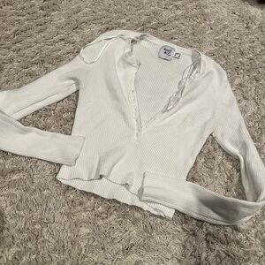 Stylish off-shoulder ribbed top. Long sleeves. Perfect for casual outings.