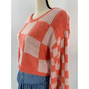 Princess Polly Orange Pink Check Sweater Balloon Sleeve Crop Top Small