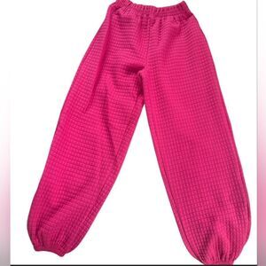 Stylish pink quilted jogger pants. Comfortable and trendy.