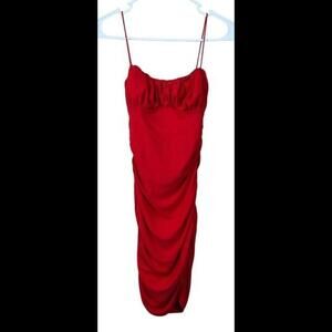 Princess Polly Penney Tight Rouched Red Spaghetti Strap Dress US 4 AU 8 Red Mini
