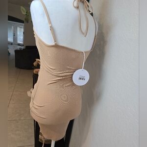 Princess Polly Peta Beige Ruched Mini Dress Size 2
