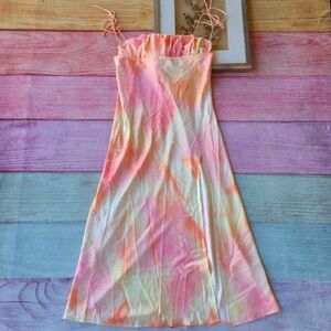 Princess Polly Pink Carsa Tie Dye Satin Tie Strap Midi High Slit Slip Dress 12US
