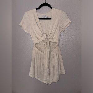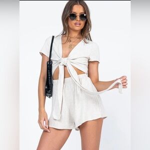 Princess Polly RAGNAR TIE FRONT ROMPER BEIGE