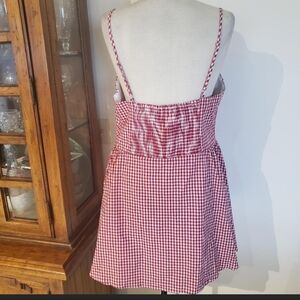 This charming mini sundress by Princess Polly showcases a vibrant red and white gingham pattern, ideal for casual outings or resort wear. The ruched bodice and spaghetti straps offer a flattering fit, while the sleeveless design keeps it breezy and comfortable.