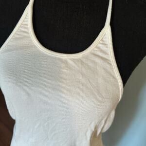 Chic and versatile, this Princess Polly ribbed halter dress features a sleek bodycon fit in crisp white. Crafted from stretchy ribbed fabric for comfort and style, perfect for nights out, parties, or layering with a jacket. Excellent pre-owned condition. Size 10. A wardrobe essential for effortless cool-girl vibes.
