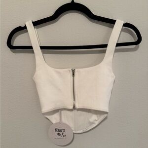 Princess Polly white ribbed bustier top. Corset fit, silver zipper on the back. Sold out on Princess Polly website