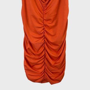 Princess Polly Ruched Bodycon Low-Back V-Neck Mini Dress Women's Size 2 Orange